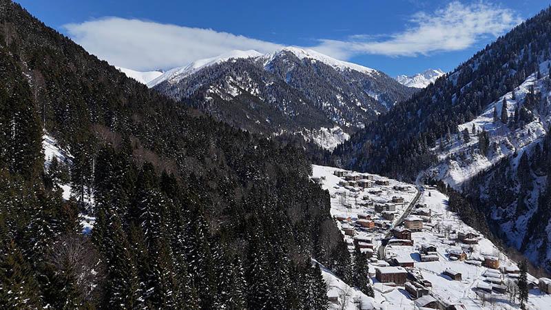 Kaplıcaları, balı, zengin florasının yanı sıra mevsimlere özel şenlikleriyle ziyaretçi akınına uğrayan yaylaya gelen ziyaretçiler, seyir terasından izledikleri eşsiz manzarayı fotoğraf çektirerek ölümsüzleştirdi. Çevresindeki orman örtüsüyle bembeyaz görünüme kavuşan Ayder'de ortaya çıkan seyirlik manzara dron kamerasıyla kayda alındı.
