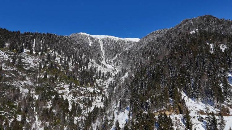Rize’nin dünyaca ünlü Ayder Yaylası, kar yağışı ile birlikte beyaz örtüyle kaplandı. Çevresindeki orman örtüsüyle bembeyaz görünüme kavuşan Ayder'de ortaya çıkan seyirlik manzara dron kamerasıyla görüntülendi.