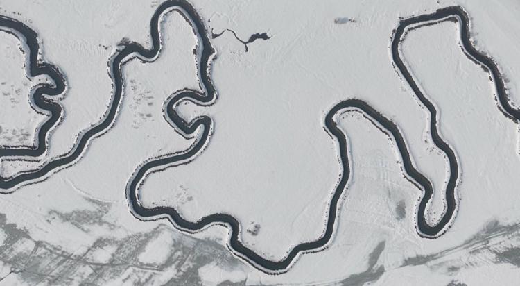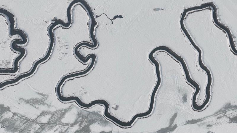 Beyaz örtüyle kaplanan Menderesler, dronla görüntülendi