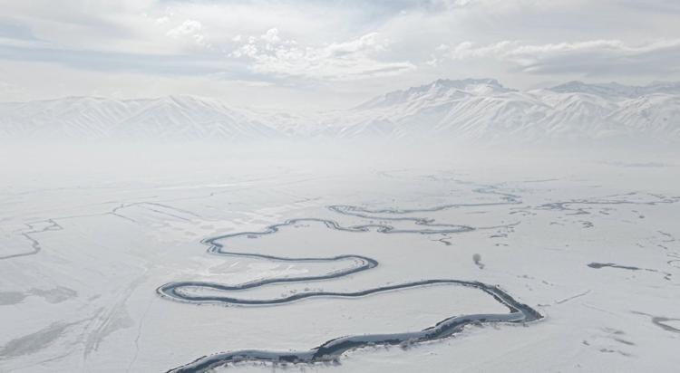 Hakkari'nin Yüksekova ilçesinde köylerin içinden geçen ve kısmen buz tutan Nehil Deresi'ndeki menderesler, dronla görüntülendi. Kar yağışı sonrası beyaz örtüyle kaplanan dere yatağının kıvrımlı yapısı, güzel görüntüler oluşturdu.