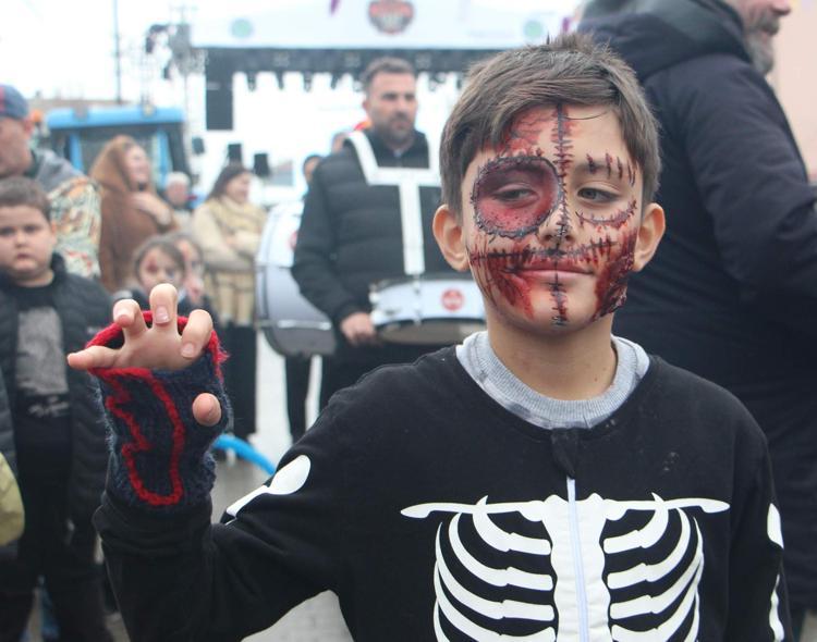 Kırklareli'nin Babaeski ilçesine bağlı Büyükmandıra beldesinde düzenlenen Balkan geleneği Koleda, etkili olan yağmura rağmen coşkuyla kutlandı. Beyaz çarşaflar giyip, maske takan ve yüzlerini boyayanlar, yağmur altında Koleda’nın vazgeçilmezi olan evlerin camlarına vurup kabak tatlısı isteme ritüelini de gerçekleştirildi. Korku temalı maske ve makyajlarıyla evlere giden katılımcılar, ev sakinlerinden kabak tatlısı istedi.
