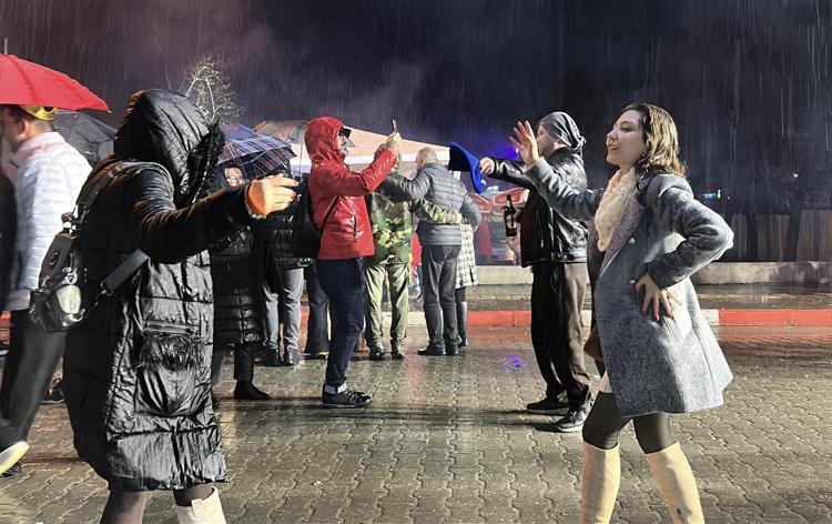 Bazı katılımcılar ise yağmur altında müzik eşliğinde göbek atarak eğlendi.