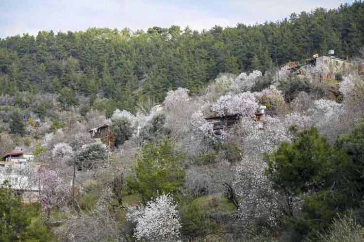 Bu yıl kış mevsiminin aşırı kurak geçtiğini anlatan Şener, "Bademler 1 ay önceden çiçek açtı. Bir soğuk olursa ne badem kalır ne bir şey. Don olursa meyve olmaz ve hasat yapamayız. Kartpostallık manzaralar var; için açılıyor seyredince ama erkeden açması iyi olmuyor" dedi.