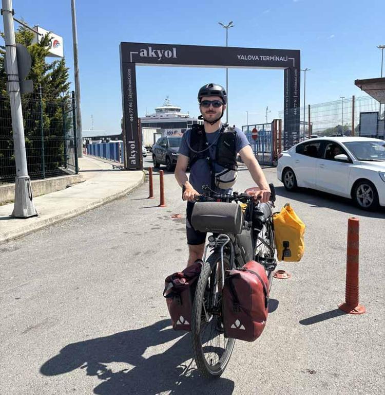 Fransa vatandaşı bisiklet tutkunu Arthur Leıre (28), Vietnam'da yaşayan ailesini ziyaret etmek için çıktığı yolculukta 1,5 ayda 4 bin kilometre yol katederek Yalova'ya ulaştı. Fransa dahil şu ana kadar 8 ülkede mola veren Leıre, "Çocukluğumdan beri bisiklet sürüyorum. İlk defa bu kadar uzun bir yolculuk yapıyorum" dedi.