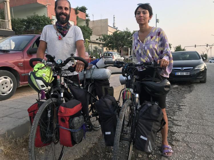 İzmir'deki işlerinden istifa ederek, hayallerini gerçekleştirmek için yola çıkan Aysu (31) ve Mustafa Halit (33) Alnıaçık çifti, günde 60 TL harcayarak bisikletle Türkiye'yi turluyor. Son olarak Mardin'in Derik ilçesine gelen e 2 aydır yolda olduklarını belirten Aysu Alnıaçık, "Ülkemin her ilini görmek, her insanıyla tanışmak ve her sokağına girmek istiyorum" dedi. Mustafa Halit Alnıaçık da "Kendi yemeğimizi, kendimiz pişiriyoruz. 2 kişi, günde 60 lira para harcayarak yolculuğumuzu sürdürüyoruz" diye konuştu.