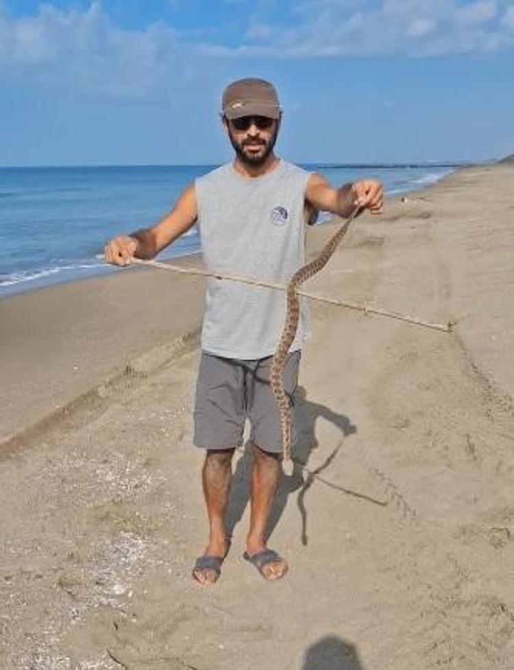 Karataş ilçesindeki Akyatan Lagünü'nün sahil kısmında sabah saatlerinde yeşil deniz kaplumbağalarıyla ilgili arazi çalışması yapan Doğal Hayatı Koruma Vakfı'nda (WWF Türkiye) görevli Yaban Hayatı Uzmanı, Biyolog Mehmet Tural, kıyıda bitkin haldeki bir yılanın anormal hareketler yaptığını gördü.