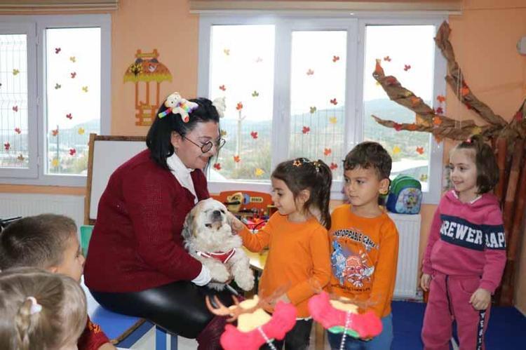 Öğrencilerden Defne Tunçyürek (5) ise "Şeker'i çok sevdim. Geldiğinde hastaydı bu nedenle tedavisi yapıldı ama tek gözünü kaybetti şimdi iyi. Şeker'i besliyoruz" derken, Doruk Şahin (5) de Şeker'le oyun oynayıp vakit geçirdiğini belirterek, "Şeker'in hep bizimle kalmasını istiyorum. Hayvanları çok seviyorum" ifadelerini kullandı.