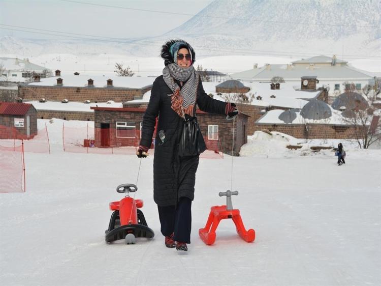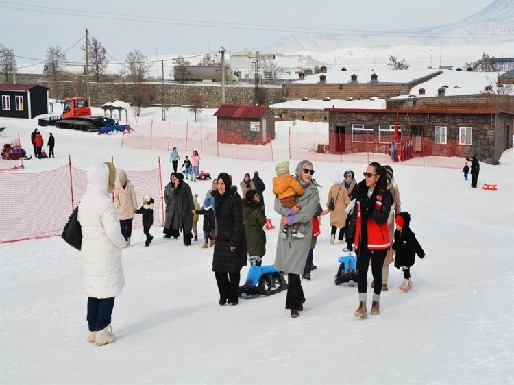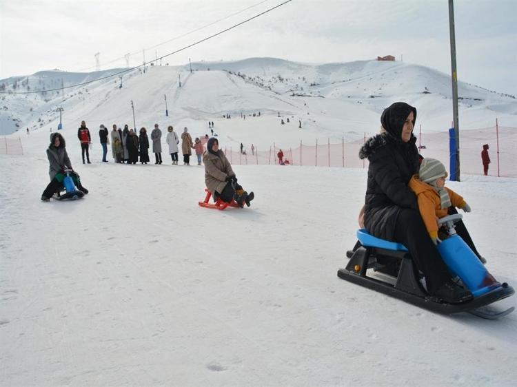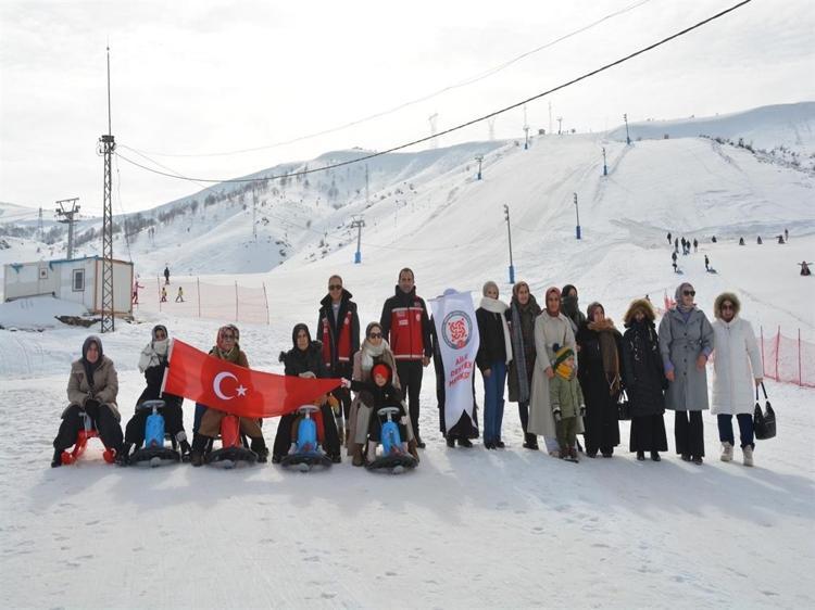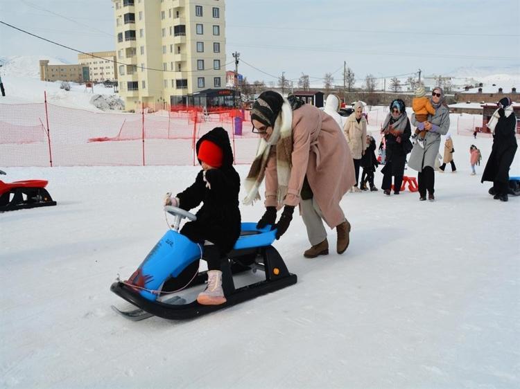 Bitlis'in Tatvan ilçesinde kaymakamlık koordinesinde, 'Aile ve Nüfus 10'uncu Yılı' etkinlikleri kapsamında düzenlenen programda anneler ile çocukları, kayak merkezinde kızakla kayarak eğlenceli anlar yaşadı
