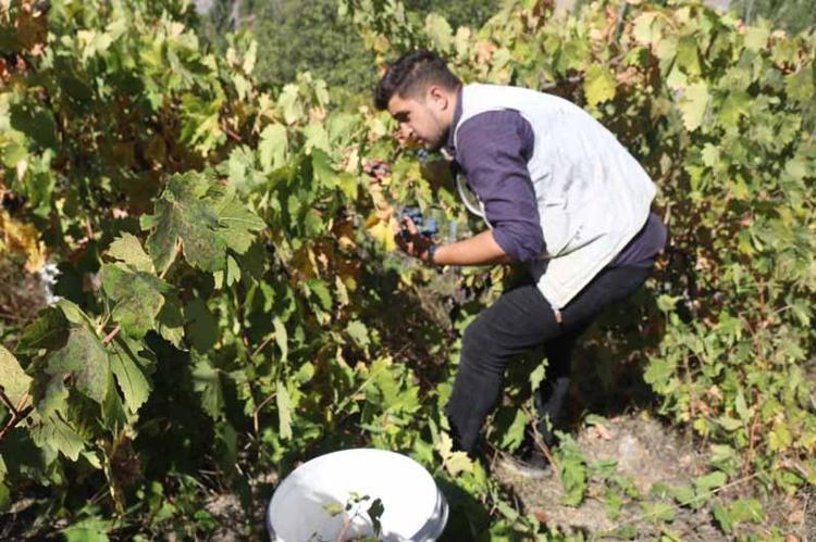 Önce bağdan üzümlerimizi topluyoruz. Daha sonra sıkma kazanlarımıza koyuyoruz. Doğal yöntemlerle üzümlerimizi güzel bir şekilde sıkıp, ondan sonra onun suyunu toprak mayası ile mayalayıp bidonlara koyuyoruz. Şeffaf bir şekle gelene kadar bidonlarda dinlendiriyoruz.