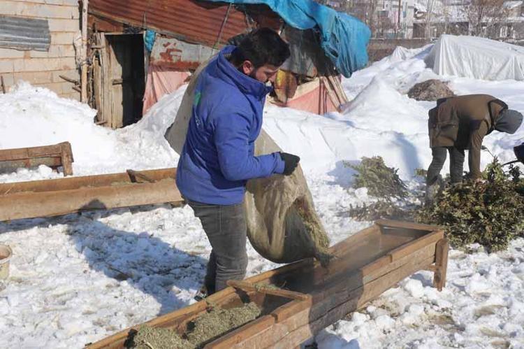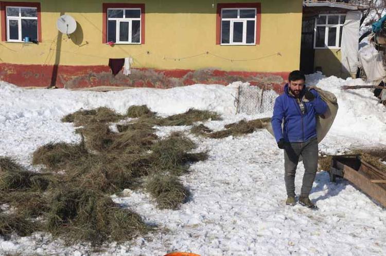 Eksi 20-23 dereceleri görüyoruz. Köylüler olarak soğuk havalarda hayvanlarımızı bu şartlarda beslemeye çalışıyoruz. Samanın ton fiyatı 10 ile 15 bin lira arasında değişiyor. 1 ton sadece 3-4 gün gidiyor. Kış boyunca 30 tona yakın saman tüketimi oluyor. Tabii sadece saman değil kuru otta veriyoruz hayvanlarımıza" dedi.