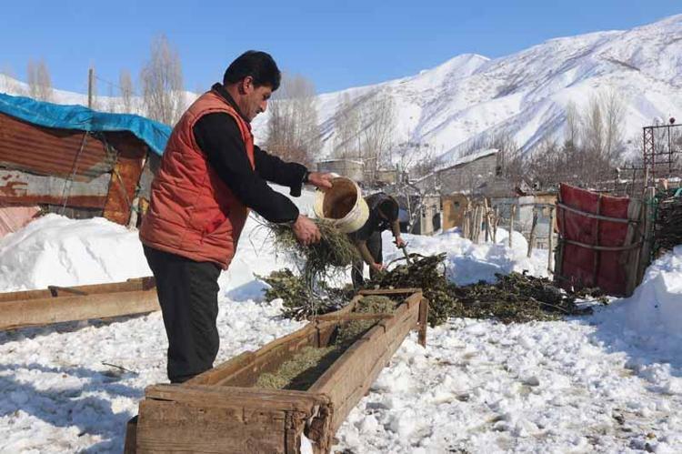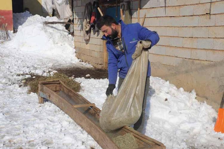 Hava sıcaklığının zaman zaman sıfırın altında 20 dereceye kadar düştüğü Değirmenaltı köyünde besiciler, her gün yaklaşık 50 metrekare alanda, 1 metreye ulaşan karı temizleyerek hayvanlarına beslenme alanı açıyor. Ahırlarına yakın yerlerde ot ve saman istifleyen besiciler, bunları karın altından güçlükle çıkarıp, sırtlarında taşıyarak hayvanlarını besliyor.