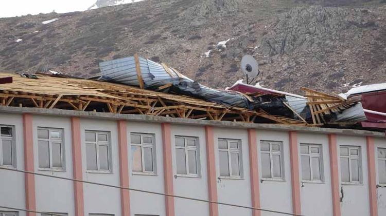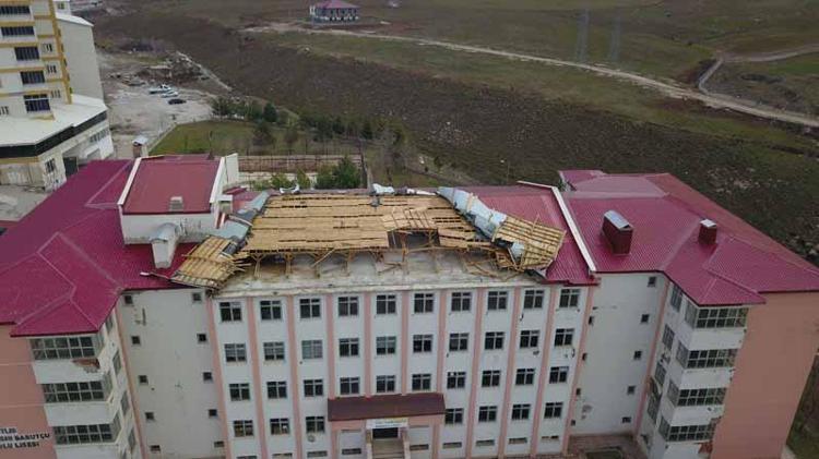 Bitlis’te dün akşam saatlerinde etkili olan kuvvetli fırtına sırasında lise binasının çatısı uçtu. Eğitime ara verilen okulda çatının onarımı için çalışma başlatıldı.