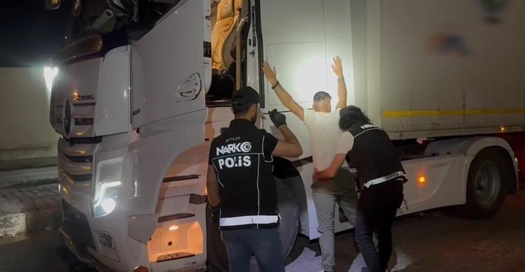 Bitlis Emniyet Müdürlüğü Narkotik Suçlarla Mücadele Şubesi ve İstihbarat Şube Müdürlüğü ekipleri tarafından yapılan çalışmalar sonucunda Tatvan ilçe girişindeki arama kontrol noktasında bir TIR durdurularak arandı.