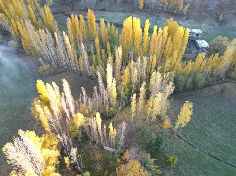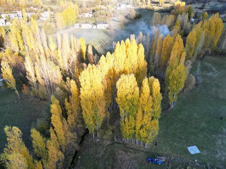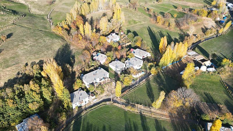 Bitlis'te doğa, sonbaharın renklerine büründü. Değirmenaltı köyünde yaşanan renk cümbüşü, dronla görüntülendi.