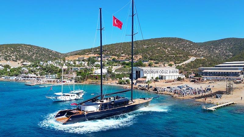 Bodrum'da 7 yılda tamamlanan 50 metre boyundaki yelkenli denize indirildi