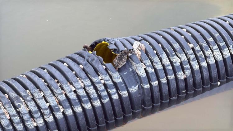 O anda bölgede çalışma yapan işçiler kaçarak son anda canlarını kurtarırken, akan tonlarca su denize kadar ulaştı.