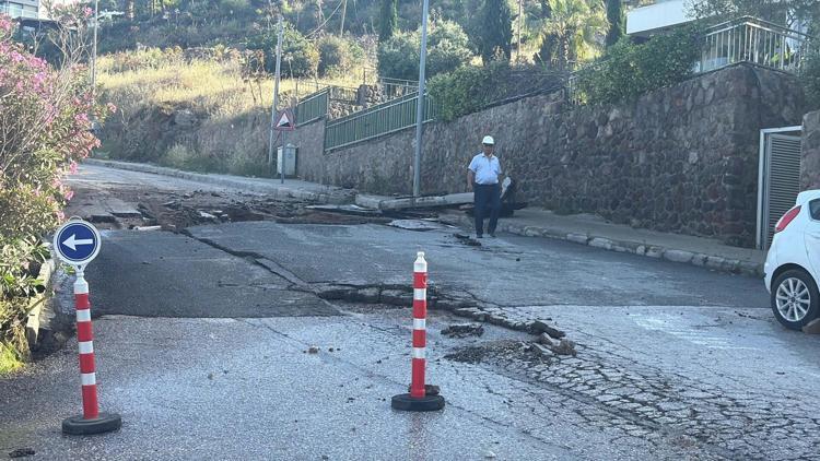 Bodrum'da ana isale patladı: 9 evi su bastı, 2 otomobil hasar gördü; o anlar kamerada