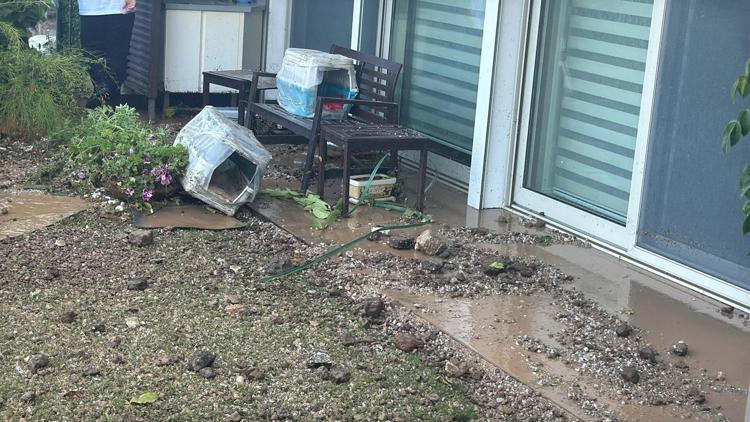 Taş parçaları ve fışkıran sular yandaki bir siteye kadar ulaştı. Sitedeki 9 evi su basarken, bahçesi zarar gördü. Park halindeki iki otomobilden birinin ön, diğerinin ise arka camı kırıldı.