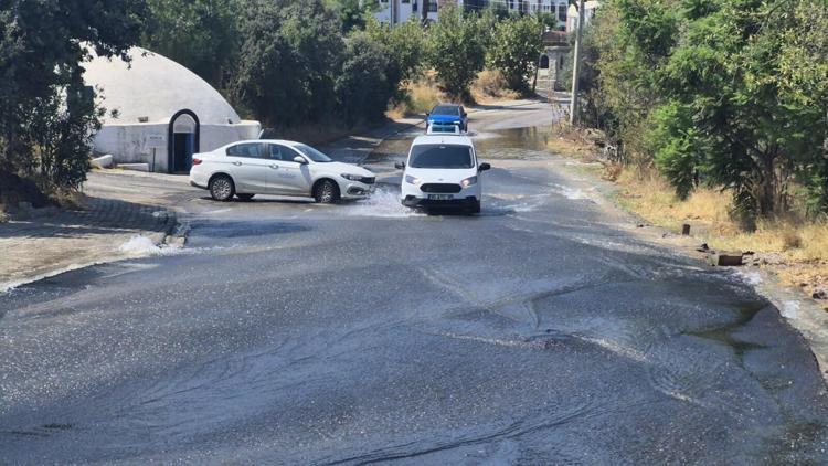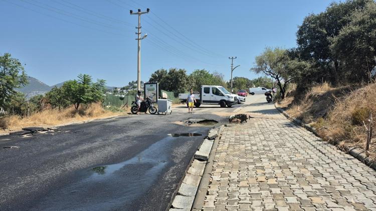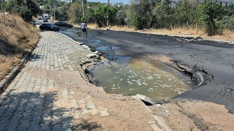Muğla'nın Bodrum ilçesinde patlayan ana su isale hattı nedeniyle tonlarca su boşa aktı, yolda çukur oluştu.