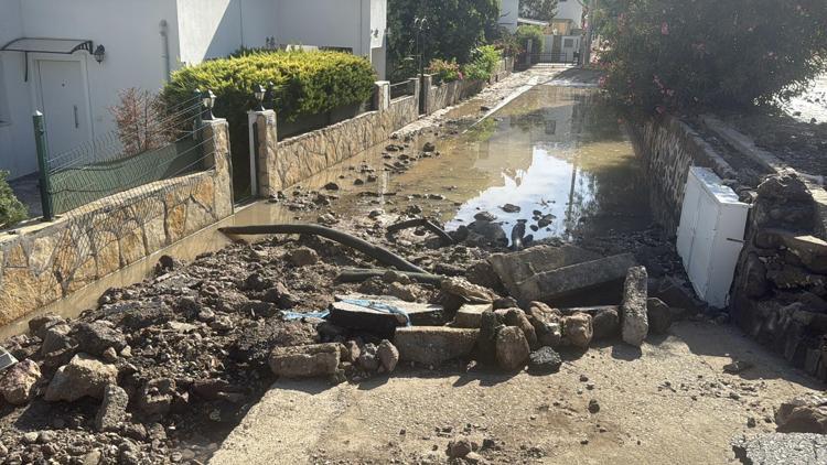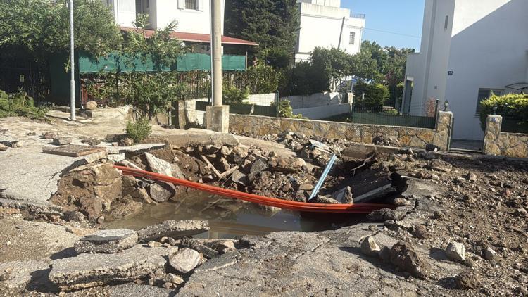 Bodrum’da ana su isale hattı patladı, yol trafiğe kapandı