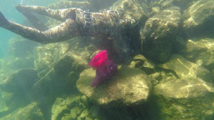 Denizden toplanan atıklar sualtı kamerası ile dalgıçların dalış anı ise dronla görüntülendi.