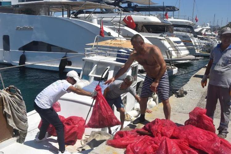 Atıklar iskele önünde sergilendikten sonra ekiplerce ayrıştırılarak Bodrum Belediyesi 1'nci Sınıf Atık Getirme Merkezi'ne götürüldü.