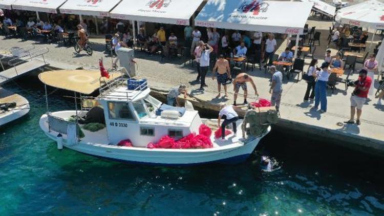 Yalıkavak İskelesi'nde Bodrum Belediyesi'nce 'Denize en çok mavi yakışır' sloganıyla denizi dibi temizliği yapıldı.
