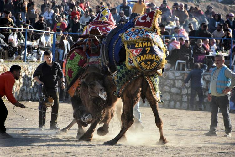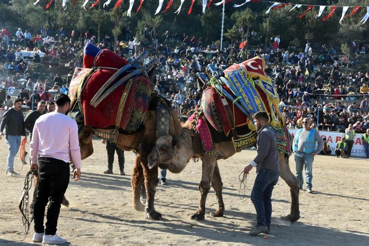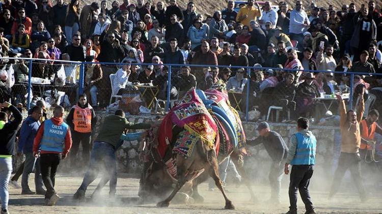 Saygı duruşunda bulunulup, İstiklal Marşı'nın okunmasının ardından arenada develer kıyasıya mücadele etti.