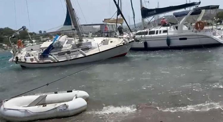 Bodrum'da fırtına; 10 tekne karaya oturdu