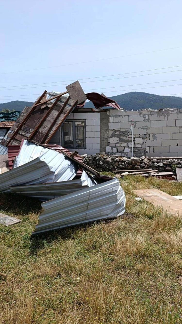 Muğla'nın Bodrum ilçesi Pınarbelen Mahallesi'nde, tek katlı müstakil evin sac ile kaplı çatısı fırtına nedeniyle uçtu. Şans eseri olayda yaralanan olmadı.