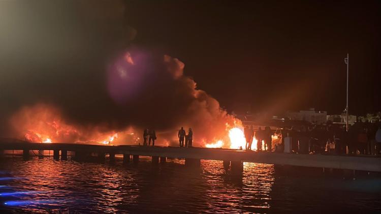 Bodrum’da marinada çıkan yangında 8 motoryat alev alev yandı