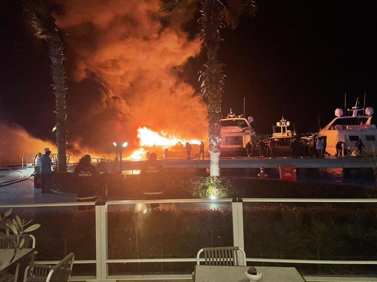 Yalıkavak Mahallesi'nde bir marinada bağlı bulunan motoryatta saat 04.00 sıralarında yangın çıktı. Alevler kısa sürede büyüyerek diğer motoryatlara da sıçradı. İhbarla bölgeye itfaiye ekipleri sevk edildi. Bodrum Bölge Liman Başkanlığı’nın talimatıyla Bodrum’dan 1, Güllük’ten ise 2 liman römorkörü ve kıyı emniyetine bağlı römorkörler de bölgeye sevk edildi. Ekipler, karadan ve denizden alevlere müdahale etti. Bodrum Sahil Güvenlik Karakol Komutanlığı ekipleri de denizde önlem aldı. Yangında yanan boyları 20 ila 30 metre arasında değişen 7 motoryat battı, 1’i ise kısmi hasar aldı.