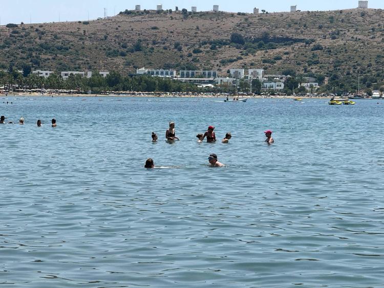 Muğla'nın dünyaca ünlü turistik ilçesi Bodrum'da Kurban Bayramı'nın ilk gününde sahillerde yoğunluk oluştu. Kimi tatilciler denize girerek serinledi kimileri de şezlonglarında güneşlenmeyi tercih etti.