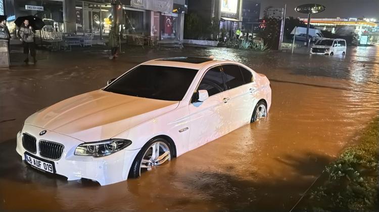 Muğla’nın Bodrum ilçesinde, etkili olan sağanak yağmur nedeniyle yol trafiğe kapandı, 2 araç sel sularında kaldı. Bölgede ekipler çalışmalarını sürdürüyor.