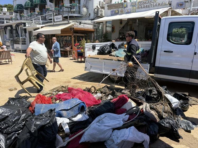 Muğla'nın dünyaca ünlü turistik ilçesi Bodrum'da, Myndons Antik Kenti çevresinde yapılan deniz dibi temizliğinde soba boruları, içki şişeleri ve çay bardaklarının da olduğu 2 ton atık çıktı.