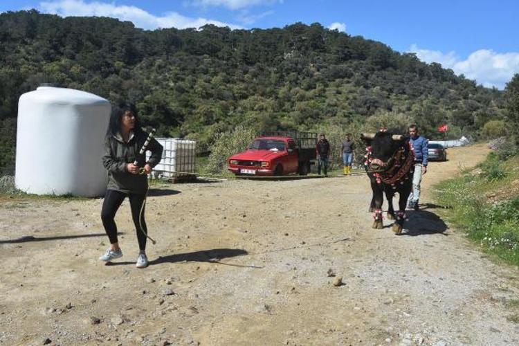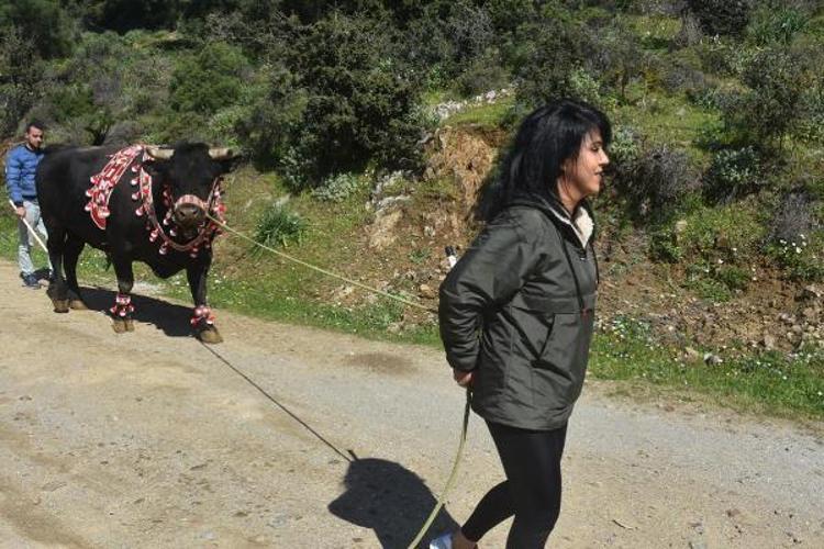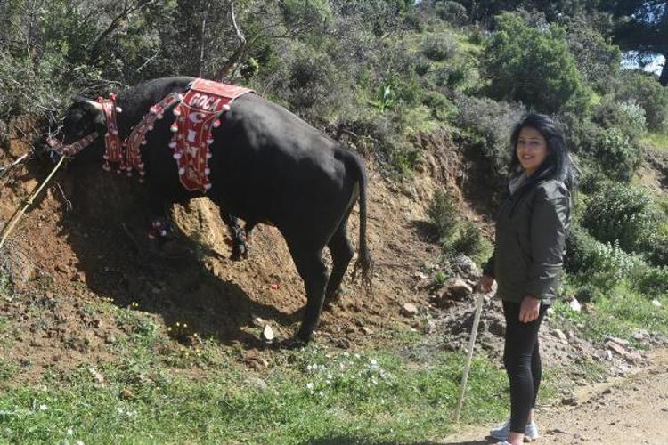 Muğla'nın Bodrum ilçesinde oğlu Çınar'ın (8) ismini verdiği boğası 'Goca Çınar' ile güreşlere katılan Buse Bozdağ (27), 7 Mayıs'taki Milas Boğa Güreşleri'ne hazırlanıyor. 'Boğaların efesi' olarak anılan Bozdağ, 2'nci çocuğuna 8 aylık hamile olduğu sırada arenaya çıktığını belirterek, "Herkes arenada heyecandan doğum yapacağımdan korktu" dedi.