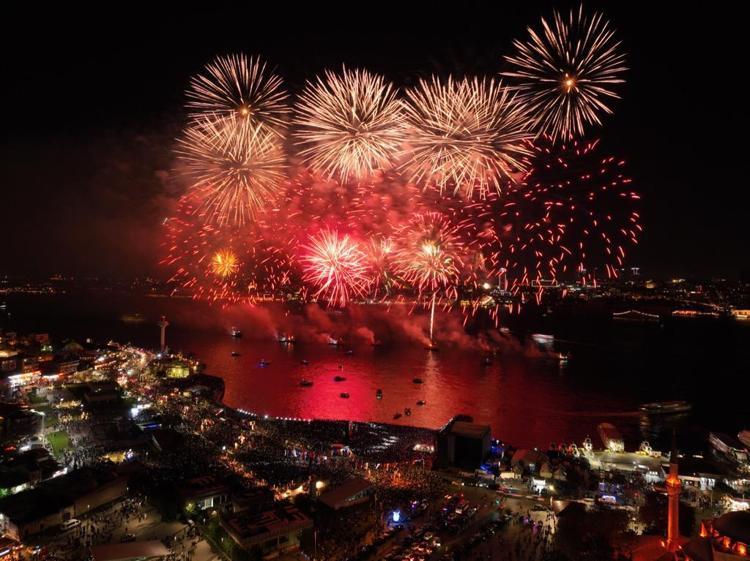 Üsküdar'da 29 Ekim Cumhuriyet Bayramı sanatçı performansları ve havai fişek gösterileri eşliğinde coşkuyla kutlandı.