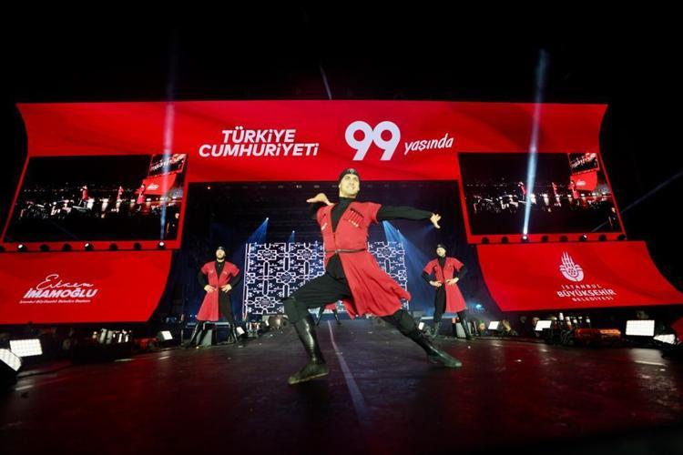 İstanbul Büyükşehir Belediyesi (İBB), 29 Ekim Cumhuriyet Bayramı'nın 99. yılı kutlamaları kapsamında sanatçı Selda Bağcan, rapçi Bege ve dans grubu Anadolu Ateşi sahne aldı.