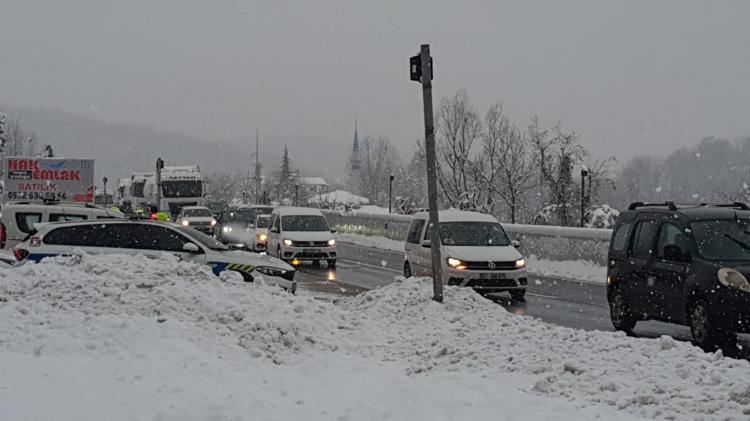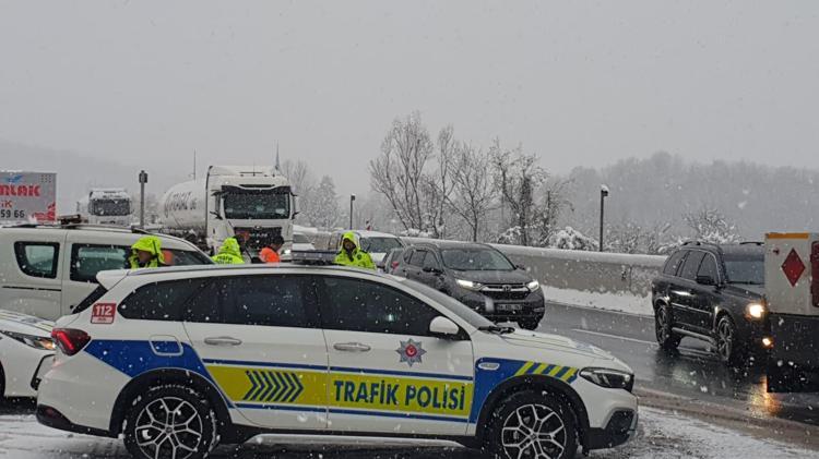 Kar yağışının devam ettiği Bolu Dağı’nda, Düzce’nin Kaynaşlı ilçesi mevkisinde Ankara yönünde ilerleyen 34 FMH 259 plakalı TIR arıza yaptı. Yolda kalan TIR nedeniyle Ankara yönünde trafikte yoğunluk oluştu. TIR’ın yoldan kaldırılması için çalışma başlatılırken, güzergahta ulaşım tek şeritten sağlanıyor.