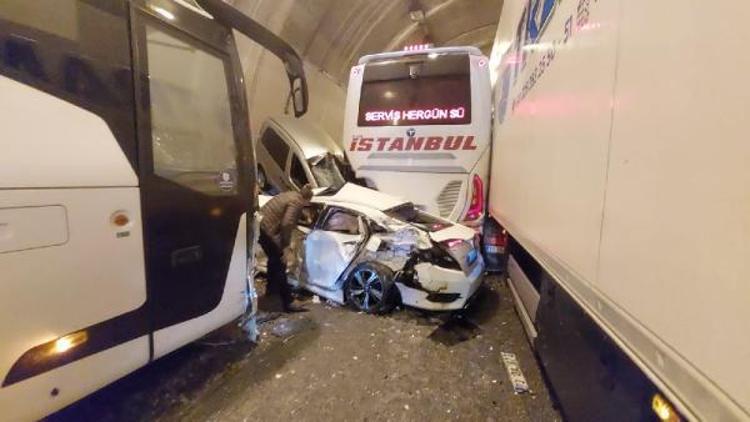 Bolu Dağı Tüneli'nde meydana gelen zincirleme trafik kazasında 18 araç çarpıştı. Bolu Valisi Ahmet Ümit, kazada 1'i ağır 30 civarında kişinin yaralandığını söyledi.