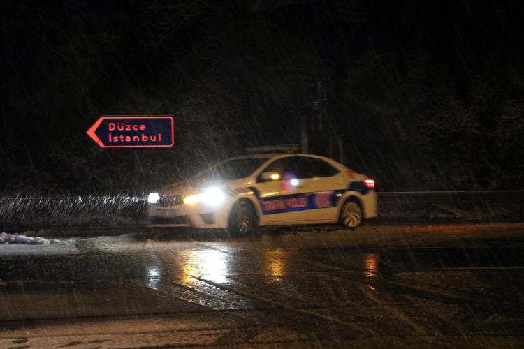 Bolu Dağı geçişinde sabah saatlerinden itibaren etkili olan sağanak, akşam saatlerinde kar yağışına dönüştü.