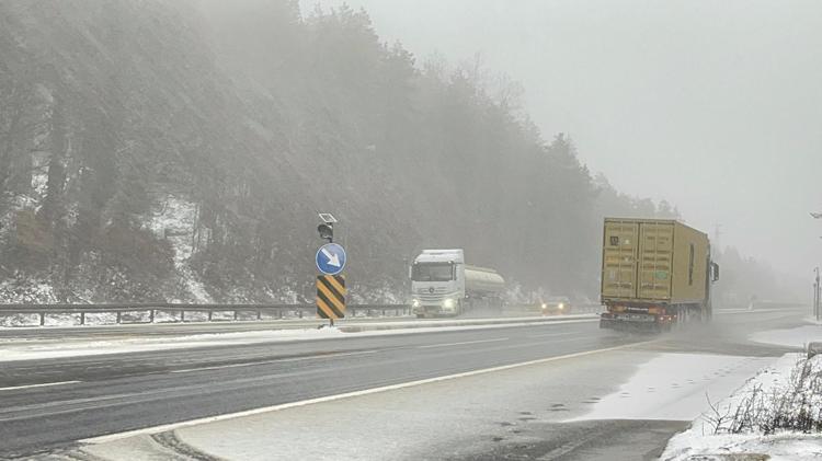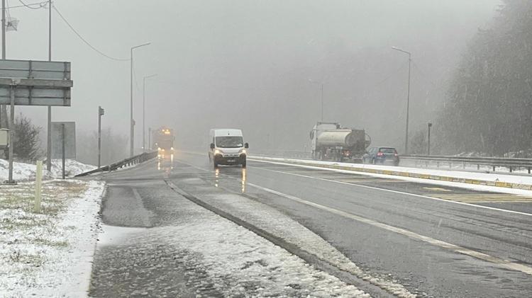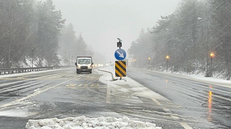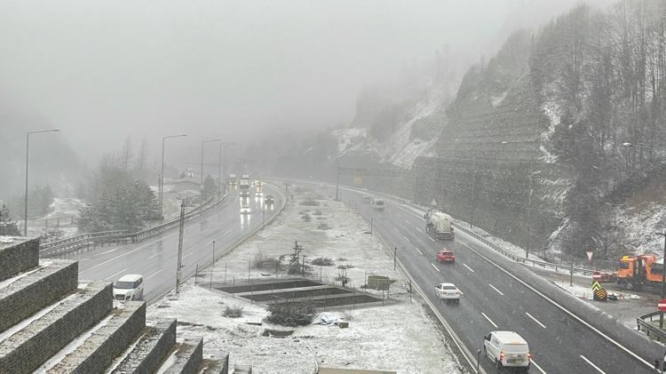 Ankara ile İstanbul arasındaki en önemli geçiş güzergahlarından Anadolu Otoyolu'nun Bolu Dağı geçişinde hava sıcaklığının sıfır dereceye kadar düşmesinin ardından hafif kar yağışı etkili oldu.