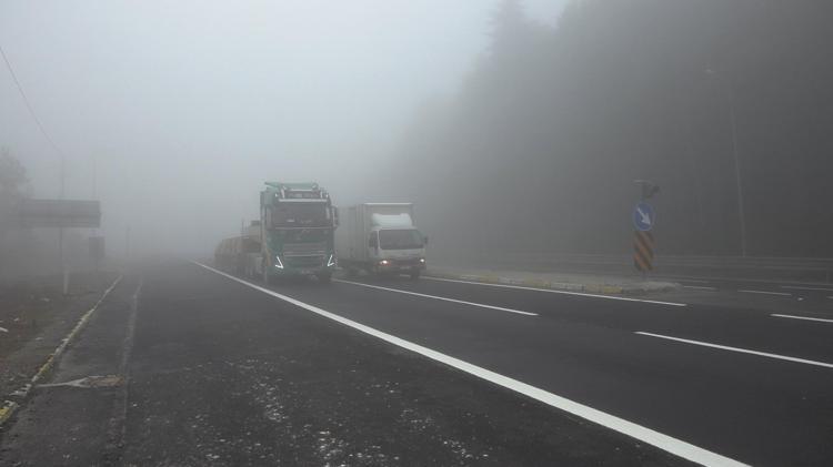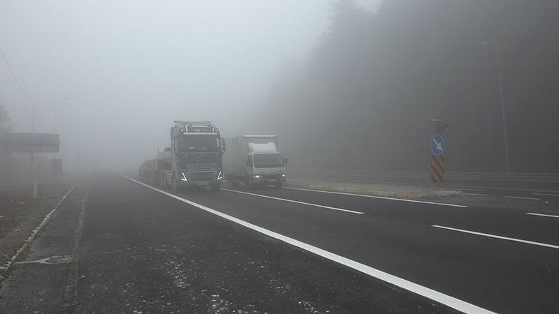 Bolu Dağı'nın D-100 kara yolu geçişinde sis etkili oldu. Sis nedeniyle görüş mesafesi yaklaşık 20 metreye kadar düşerken, sürücüler yavaş ilerledi.
