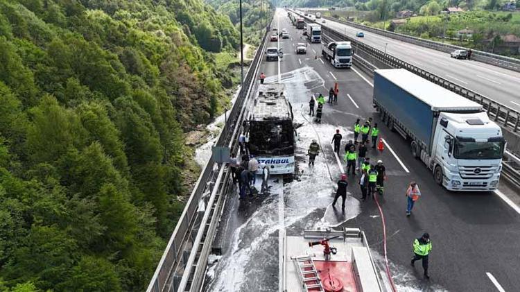 İstanbul istikametine giden Kenan B. idaresindeki, 34 MTC 935 plakalı, içerisinde 33 kişinin bulunduğu yolcu otobüsü, saat 10.00 sıralarında Anadolu Otoyolu'nun Bolu Dağı 1’inci Viyadük mevkisinde motor kısmından alev aldı.