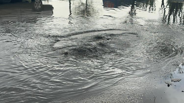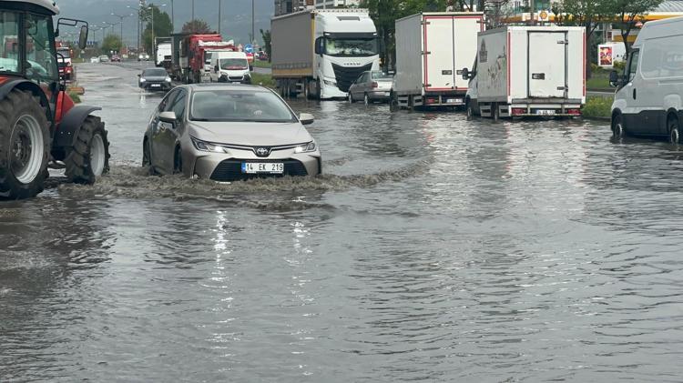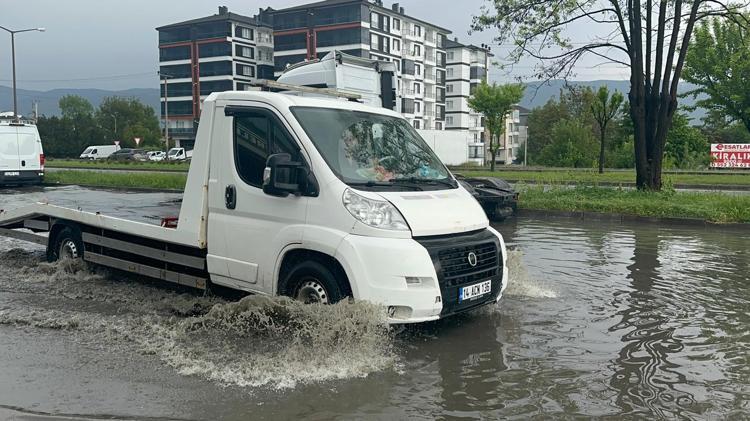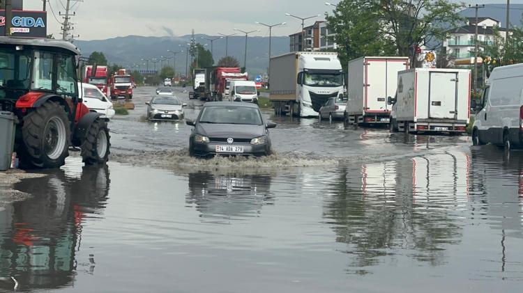 D-100 kara yolu yan yol oto sanayi sitesi mevkisinde araçlar suların içinde ilerledi.