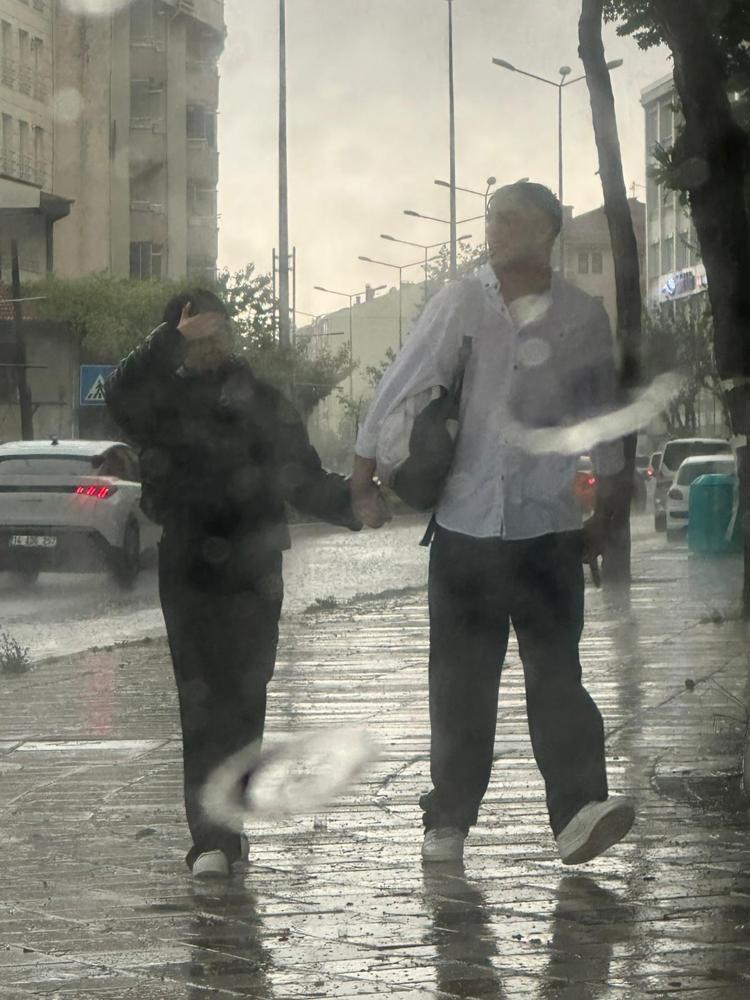 Vatandaşlar, sağanak ve fırtına sırasında sığınacak yer ararken, kentin birçok noktasında fırtına nedeniyle ağaçlar devrildi.