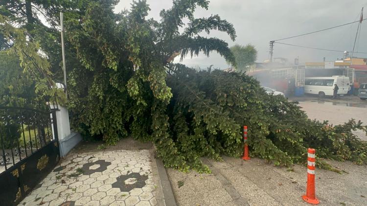 Belediye ekipleri, devrilen ağaçların kaldırılması ve su baskınlarının yaşandığı noktalarda rögarların açılması için çalışma başlattı.