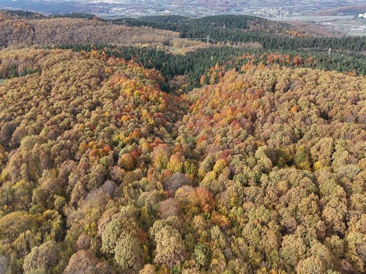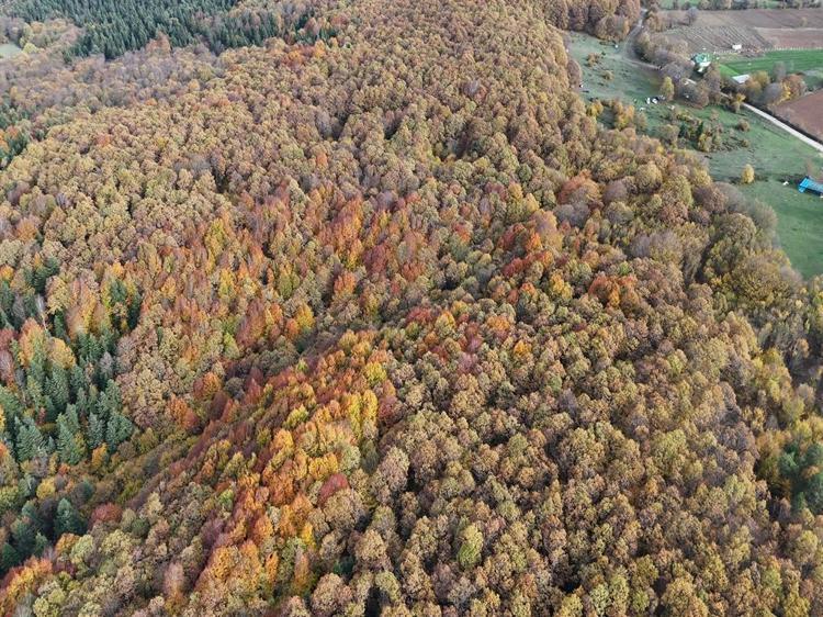 Kent merkezine yaklaşık 10 kilometre uzaklıktaki Avdan köyü yakınlarındaki ormanlar, sonbaharla birlikte farklı bir güzelliğe büründü. Yeşil, sarı ve kahverenginin farklı tonlarının bir arada görüldüğü ormanlar, doğa tutkunlarına eşsiz manzaralar sunuyor. Ağaçların yapraklarının oluşturduğu renk değişimi ve bölgenin doğal güzelliği dronla görüntülendi.