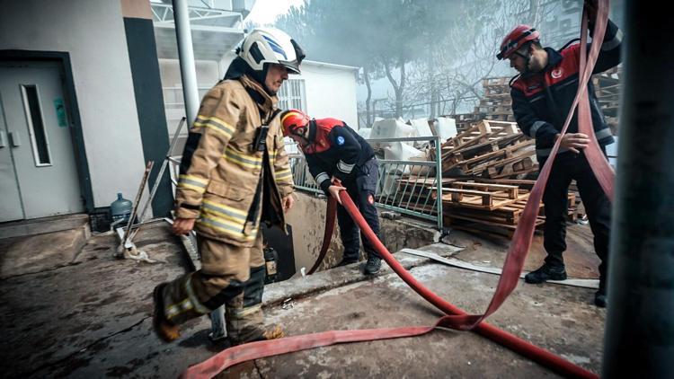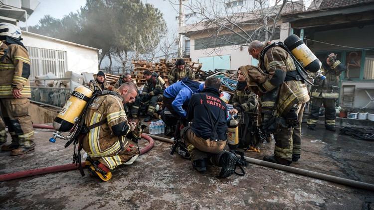 Bornova'da ayakkabı fabrikasında yangın; üst kattakileri itfaiye kurtardı