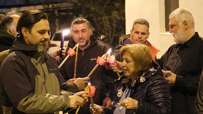 Ayinde mum yakılarak dualar okundu. Papaz Akakios, ayinin ardından cemaate Paskalya yumurtası ile çeşitli yiyeceklerin bulunduğu hediye paketleri dağıttı.